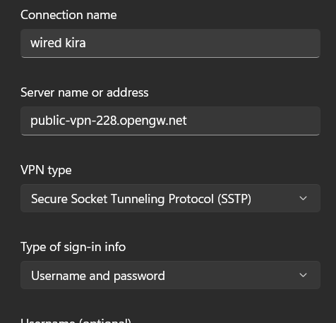 Step 6:- VPN type select Secure Socket Tunneling Protocol(SSTP)